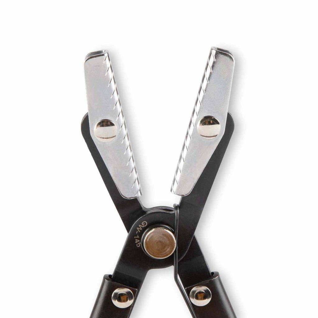 - Pliers squeeze hoses shut, and jaws swivel for parallel clamping
