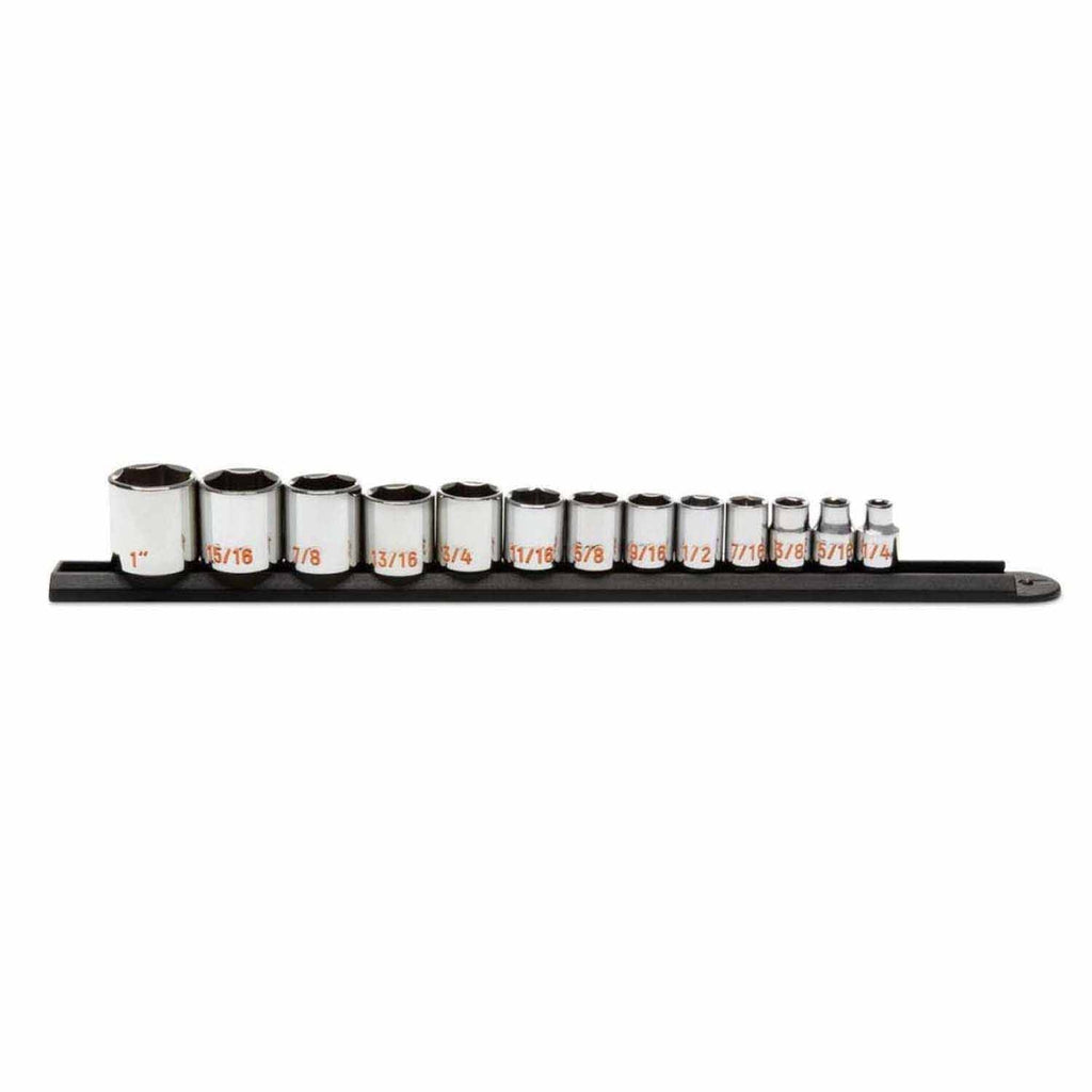 - (13) 6-Point SAE Sockets: 1/4 in, 5/16 in, 3/8 in, 7/16 in, 1/2 in, 9/16 in, 5/8 in, 11/16 in, 3/4 in, 13/16 in, 7/8 in, 15/16 in, 1 in