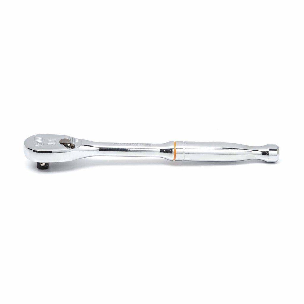 GEARWRENCH mechanics tools have all been designed with the professional user in mind to increase productivity, access, and strength. The ratchets and sockets are made from premium alloy steel and feature a full polish chrome finish that resists rust and corrosion. Large, hard-stamped markings allow for easy identification and can be easily recognized as SAE (double line) or metric (knurled line). Additionally, the off-corner loading design puts force on the flats of fasteners for improved durability and reduced fastener rounding.
