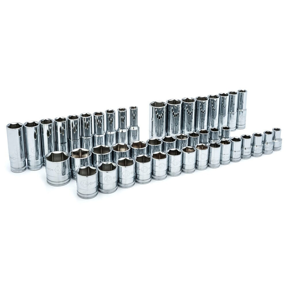 | Set Components | Ratchet 2 Extensions Universal Joint 12 Standard SAE Sockets 15 Standard Metric Sockets 8 Deep SAE Sockets 10 Deep Metric Sockets |