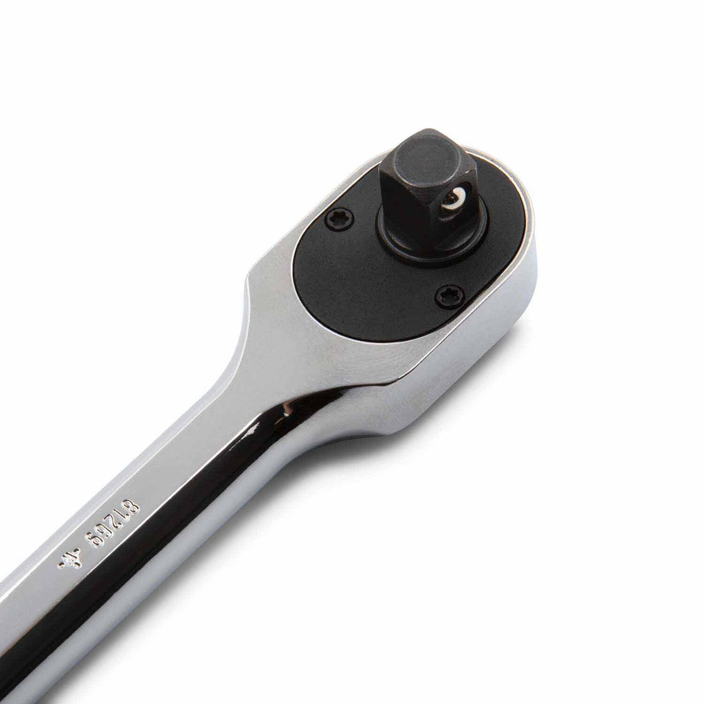 The Gearwrench 3/8" Drive 120XP Full Polish Chrome Extra Long Handle Teardrop Ratchet offers exceptional strength and reach with its 120 positions and 3° swing arc.