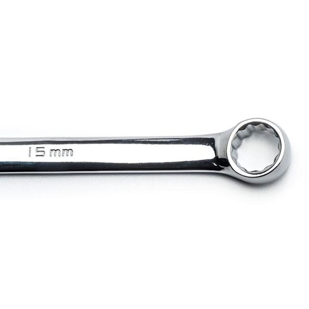 The GEARWRENCH combination wrenches are durable, made from alloy steel with a bright, full polish finish. The off-corner loading design on both ends provides a stronger grip on fasteners, reduces fastener rounding, and delivers up to 25% more torque to the fasteners. Sizes are stamped on the open end head, as well as the beam for quick and easy identification. The box end is offset 15° for increased access to fasteners. The 81916 is a 22 piece 12 point, metric long pattern set including sizes 6 mm to 32 mm. The set comes in a sturdy tool roll for storage and organization.