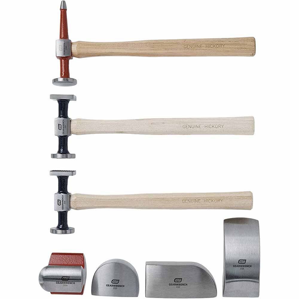 Remove dents from auto body panels with this 7-piece hammer and dolly set. After a collision or accident, repairing dents and dings takes a skilled hand and specialized tools. Turn to the proven strength of GEARWRENCH hammers and dollies to shape panels back to their original form. These three specialized hammers and four functional dollies can handle the most common problems that automotive technicians, mechanics, or body shop professionals might encounter.
