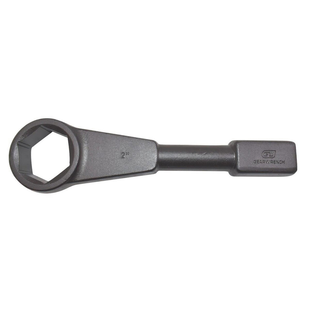 Built for demanding oil and gas and MRO environments, the GearWrench 2 in. 6-Point Standard Slugging Wrench is drop forged from heat-treated steel and finished with a corrosion-resistant black oxide coating for lasting strength and durability. Designed to be struck with a hammer or mallet, this straight slugging wrench features a large striking surface for efficient hammer contact and a box end that stays securely engaged with fasteners during impact. The straight rectangular design withstands heavy sledging, resists springing, and transmits force more effectively to the fastener. Meets or exceeds all ASME B107.59 standards.