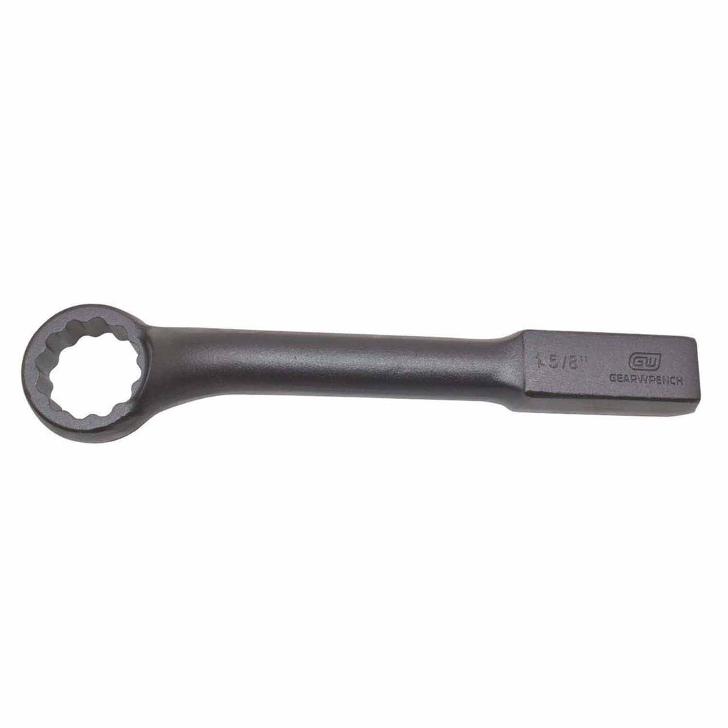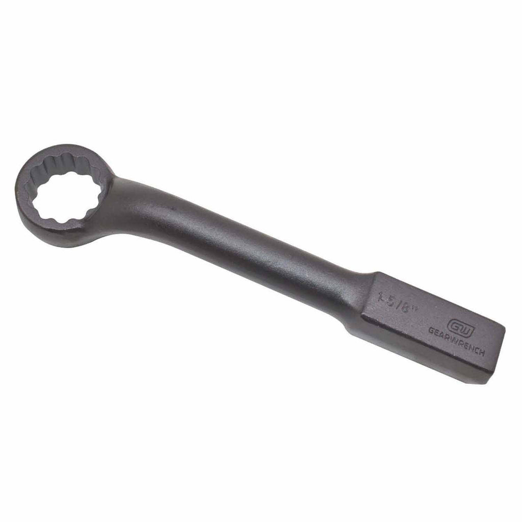 Heavy-duty 45 degree offset slugging wrench with a 12-point box end for striking applications. Built from heat-treated steel and finished in black oxide for strength and durability, it stays engaged with the fastener when struck and provides clearance around obstructions.