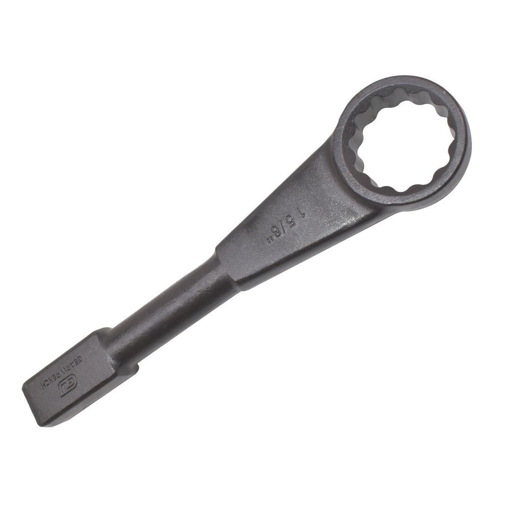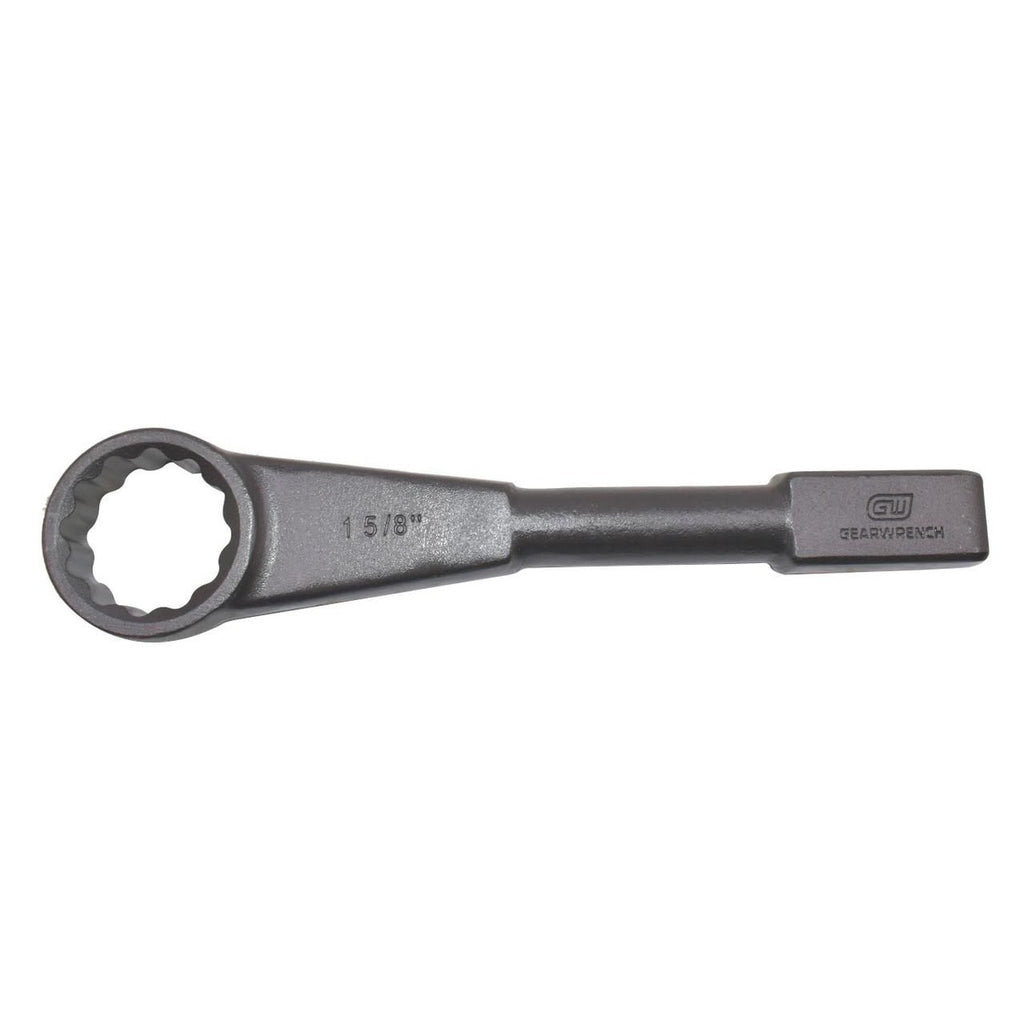 The GEARWRENCH 82373-05 is a 1-5/8 in. 12 Point Standard Slugging Wrench built for oil and gas and MRO environments where extreme force is required to loosen or tighten large, rusted-on, or stuck fasteners. Drop forged from heat-treated steel and finished with a corrosion-resistant black oxide coating, this wrench delivers outstanding strength and durability. Its large striking surface provides efficient hammer contact, and the box end is designed to remain securely engaged with the fastener when struck. Hard-stamped size markings ensure quick identification on the job, and the wrench meets or exceeds all ASME B107.59 standards. Backed by a Full Lifetime Warranty.