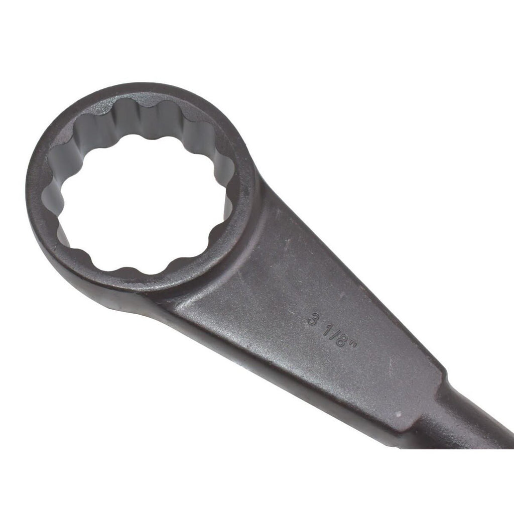 The GEARWRENCH 82392-05 3-1/8 in. 12 Point Standard Slugging Wrench is engineered for demanding oil and gas and MRO environments where extreme force is required. Drop forged from heat-treated steel and finished with a corrosion-resistant black oxide coating, this wrench is built to withstand repeated heavy strikes from a hammer or mallet. The box end stays securely engaged with the fastener during impact, while a large striking surface maximizes force transfer. Hard-stamped size markings are positioned in an easily identifiable location for quick use in the field. Meets or exceeds all ASME B107.59 standards for performance and safety.