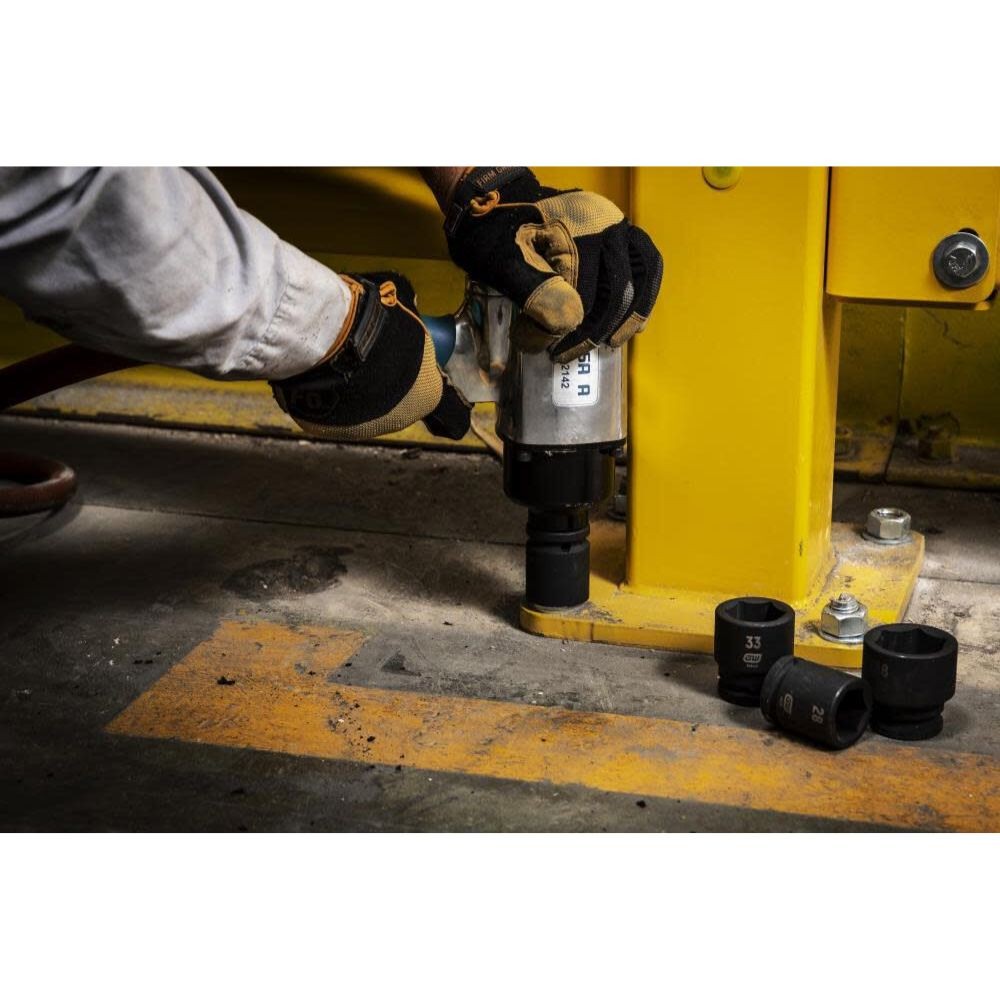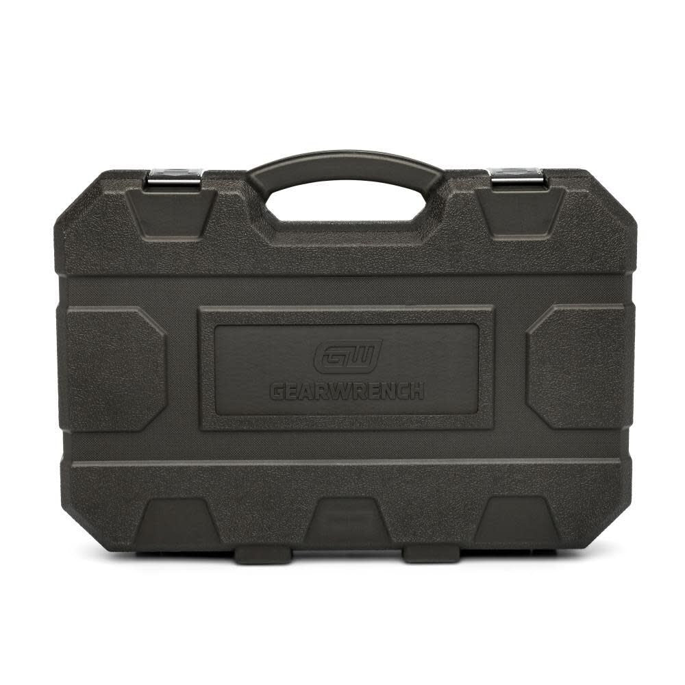 The GEARWRENCH 84031 - 3/4" Drive 26 Piece 6 Point Metric Impact Socket Set is built to handle even the harshest extreme professional work environment. The set features heavy duty impact sockets made of premium Chrome molybdenum alloy steel (Cr-Mo) for exceptional strength and durability, have high visibility size markings with bright laser etchings and secondary hard stamped size markings, the sockets are of standard “shallow” depth with a 6 point off-corner loading design reduces fastener rounding. The sockets meet or exceed ASME specifications for strength/durability and feature a pin hole that can be used with pin and O-ring for secure socket retention to a drive tool. The sockets come packed in a durable blow molded case by GEARWRENCH is designed to withstand extreme conditions and provides protection and organization for the sockets, making it easy to store and transport the entire set.