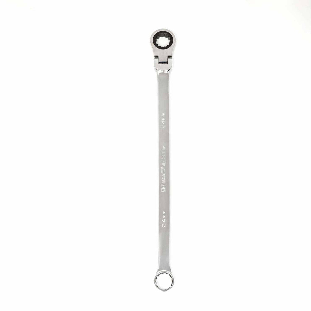 The Gearwrench 24mm 72-Tooth XL GearBox Flex Head Double Box Ratcheting Wrench offers a flexible head and a long beam for enhanced access and performance in tight spaces.