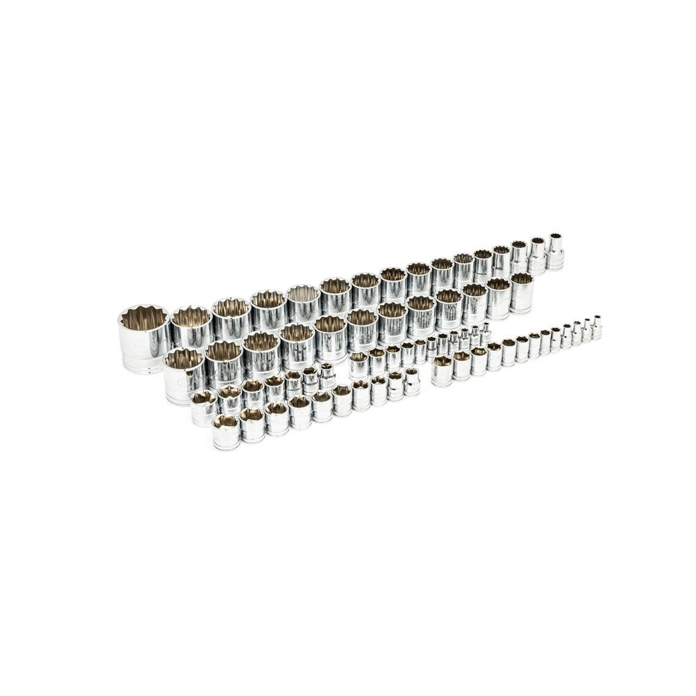 - 6Pt full polish chrome SAE and metric 1/4, 3/8 and 1/2" standard sockets featuring off-corner loading design to reduce fastener rounding "
