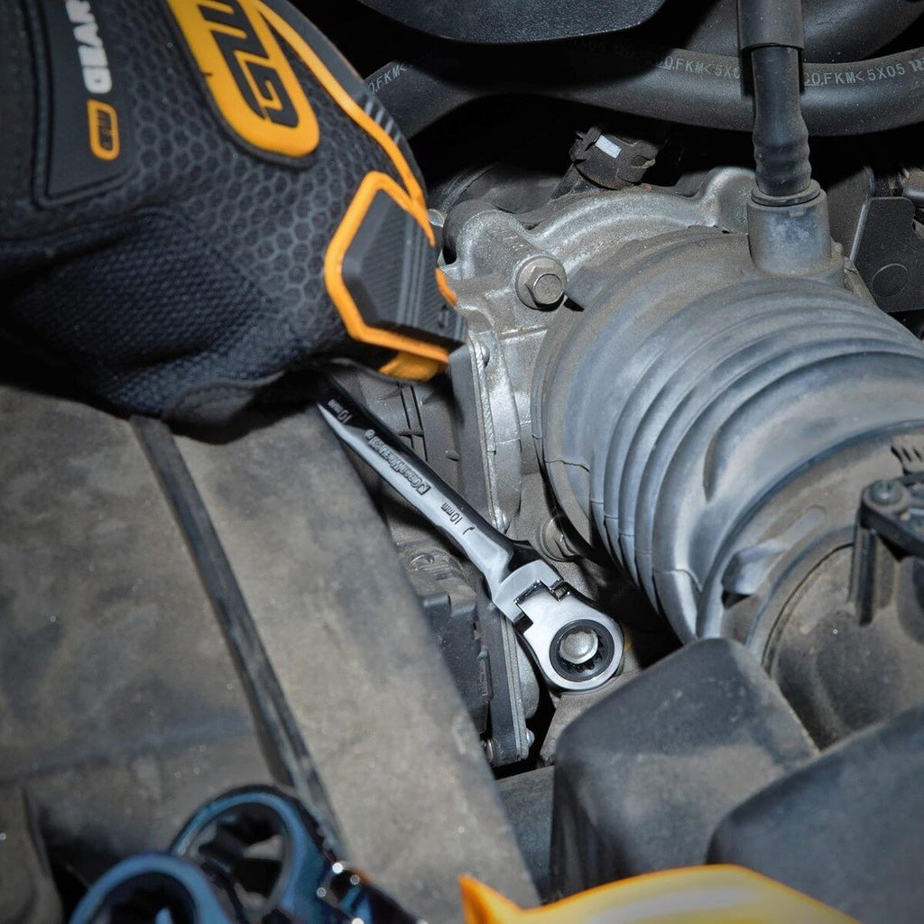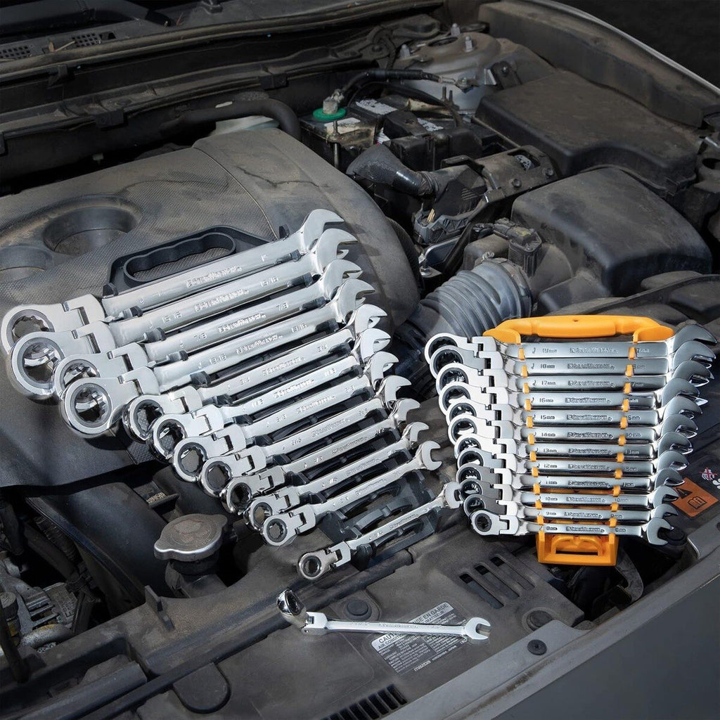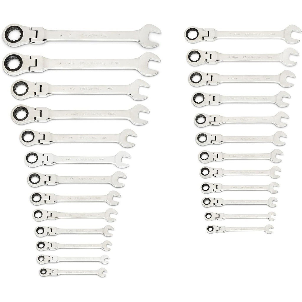 - Includes both SAE and metric flex head combination ratcheting wrenches