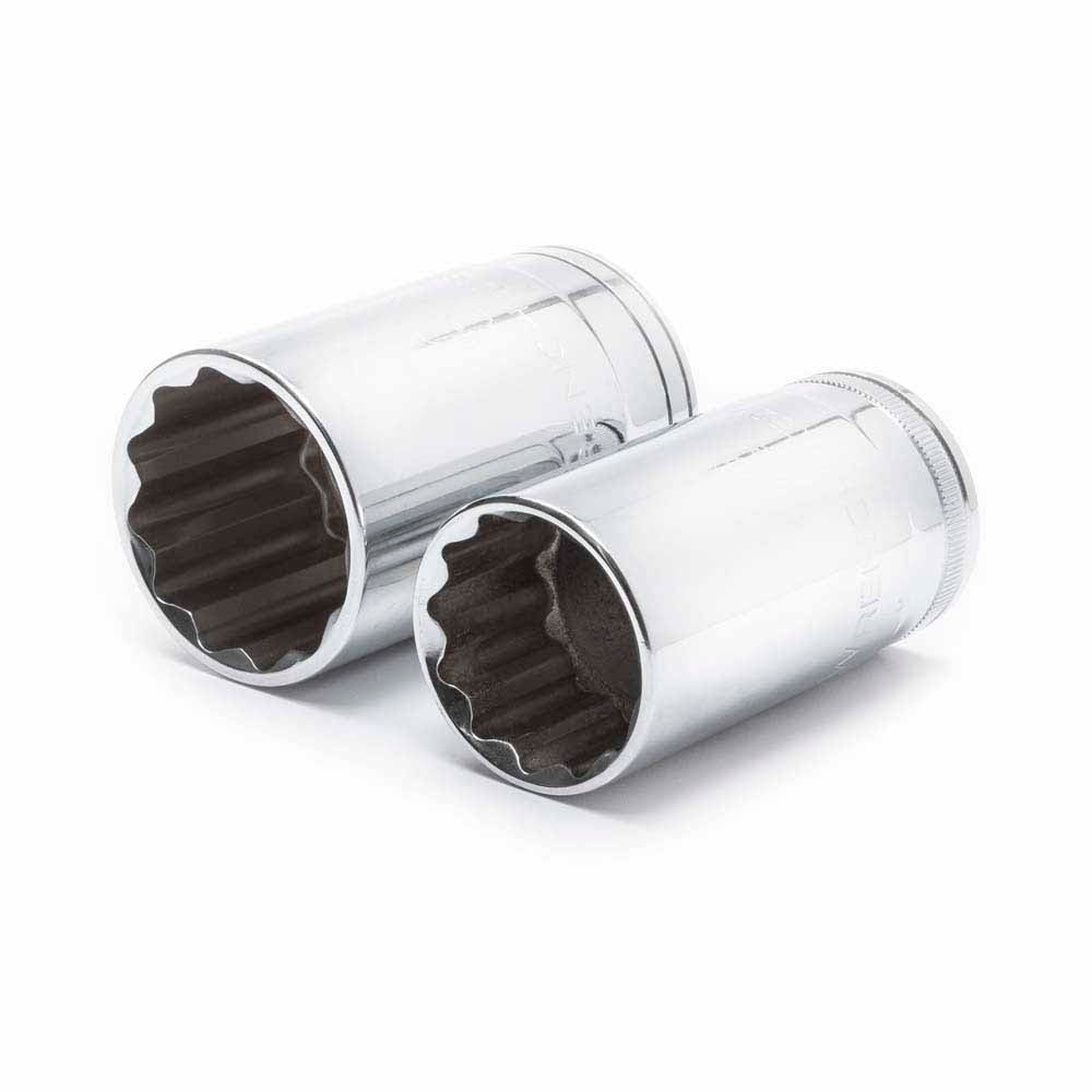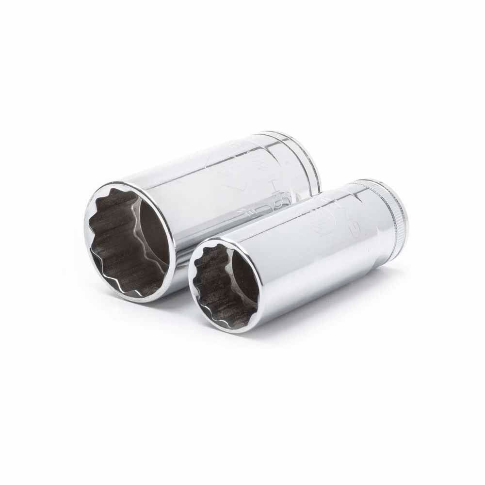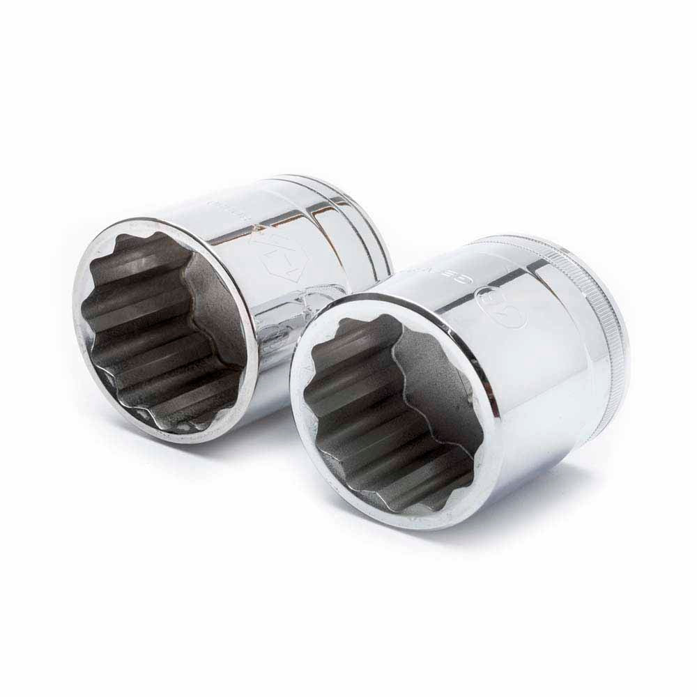 - 1/4” , 3/8”, 1/2” drive chrome 12 point sockets