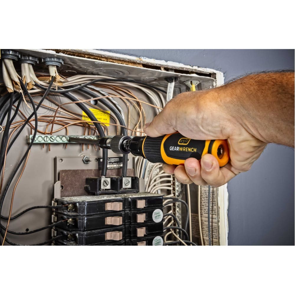 20pc kit ideal for electrical connections needing torque load. 10 To 50 In/Lbs range. Not insulated for electric shock. Comes with 7 long nut drivers 1/4 to 1/2. Includes (4) Phillips bits #1 & #2 , (4) slotted bits 1/4 & 3/16 , (4) square drive bits #1 & #2. Blow mold case included.