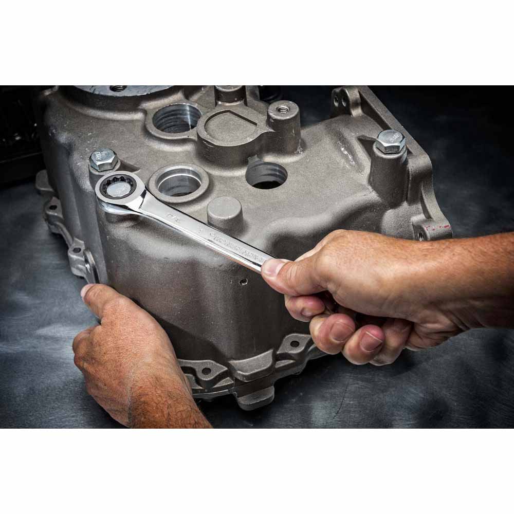 - 72 Tooth ratcheting box end needs a minimal 5 to move fasteners vs 30 for standard wrenches