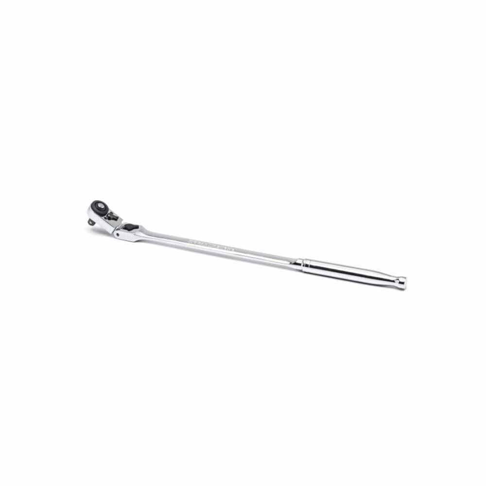 - Locking flex-head has 9 positions for maximum access, with flush-mounted forward/reverse lever