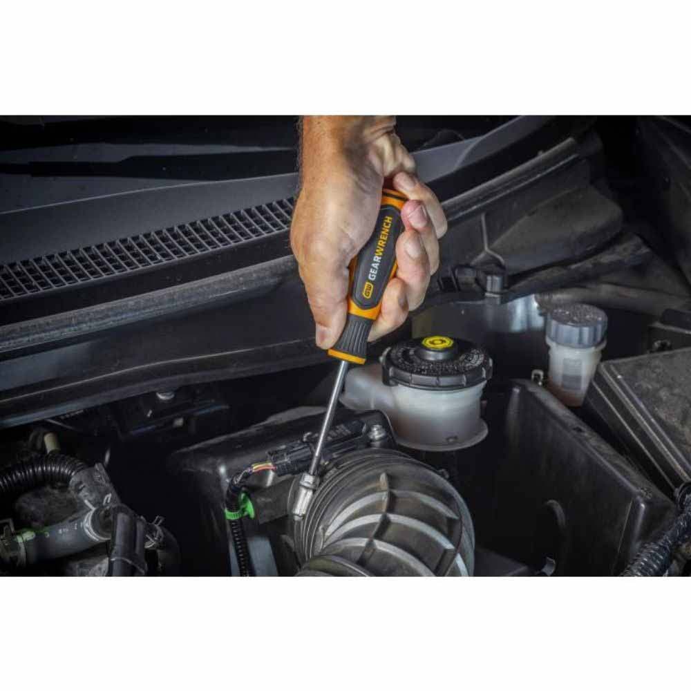GEARWRENCH mechanics tools have been designed with professional users in mind for better productivity, access, and strength. The 9 piece slotted dual material screwdriver set in a foam storage tray is one of the wide collection of GEARWRENCH Modular Sets. These chemical and solvent resistant foam trays are designed to fit in a wide range of tool storage systems, including our GSX storage line of products. The foams are in contrasting orange and black with high visibility size markings for easy tool identification. Each of the tools fits in a custom cutout that provides optimal protection, organization, and accessibility.